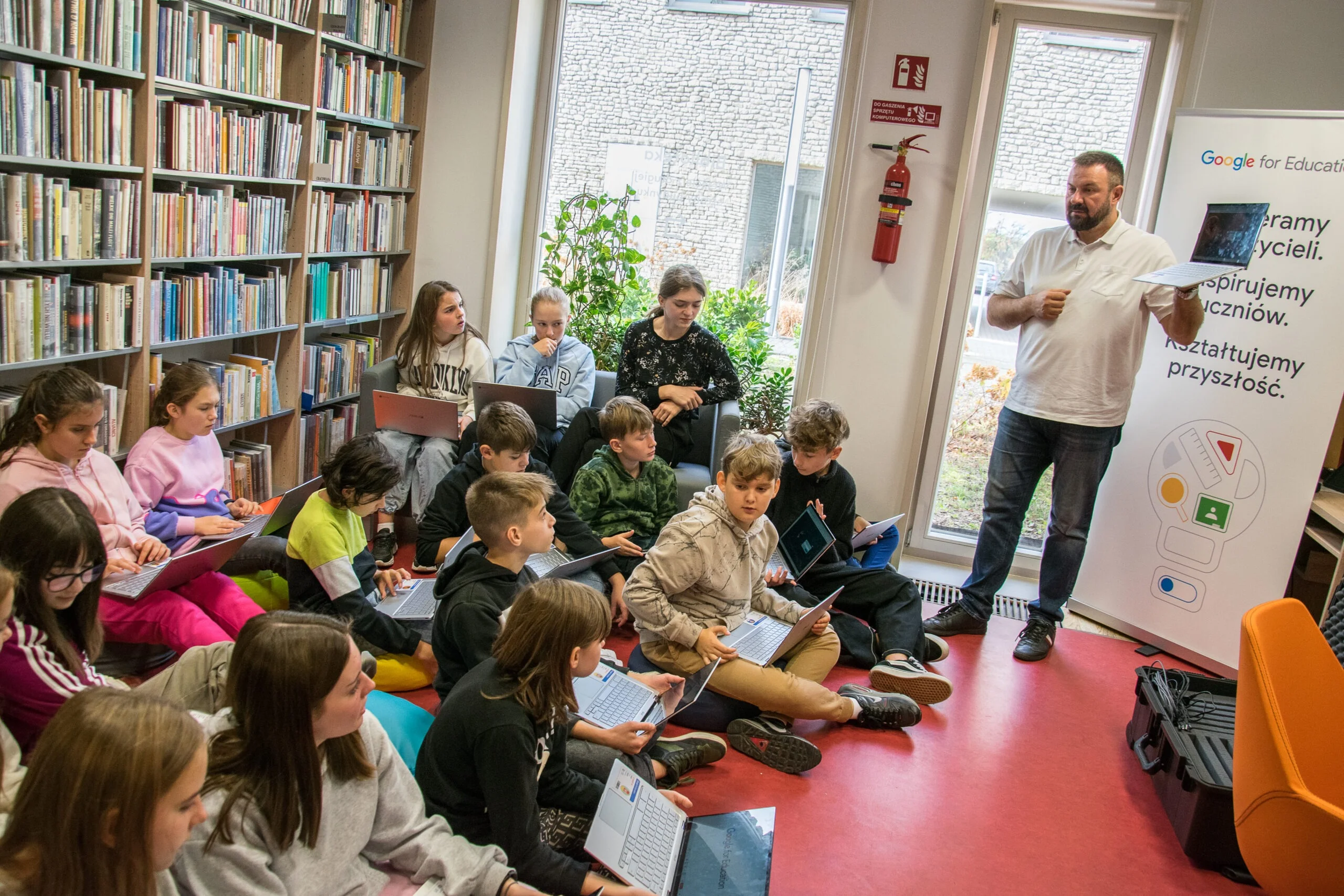 Podczas interaktywnych spotkań, dzięki wykorzystaniu nowoczesnych Chromebooków i dostępu do zaawansowanych narzędzi AI, takich jak chat GEMINI i GPT, młodzi uczestnicy mieli unikalną okazję do rozwijania swojej kreatywności, eksperymentowania z nowymi technologiami, nauki tworzenia efektywnych promptów oraz zdobywania wiedzy na temat świadomego i odpowiedzialnego korzystania z potencjału sztucznej inteligencji.
