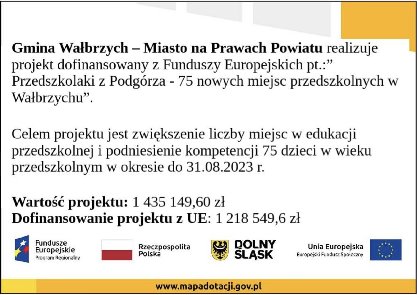 Projekt - Przedszkolaki z Podgórza - 75 nowych miejsc przedszkolnych w Wałbrzychu